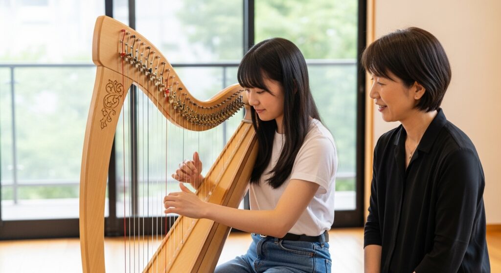 当教室の個人レッスンの特徴は月1回、月2回という形でレッスン頻度が決まっておりません。ご予定を伺いながら3回レッスンを一括でお申込いただきますが、御自身のペース、ご予定、ご予算に合わせて月3回、月1回とレッスンの頻度を選んでいただけます。アイリッシュハープを習う方のためのレッスンです。